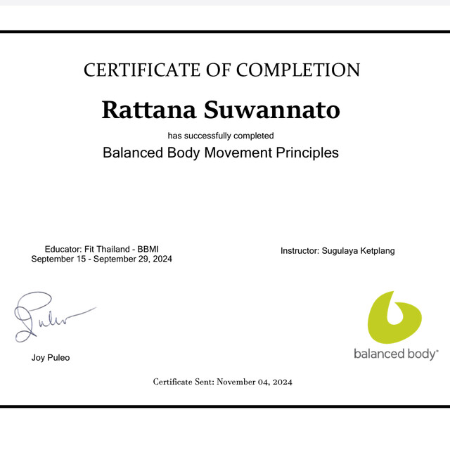 ✅จบหลักสูตรพิลาทิส Mat (Balanced Body)