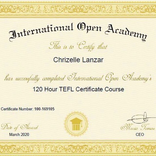 สวัสดีค่ะ! ฉันคือครู Chriz จากประเทศฟิลิปปินส์ ฉันเป็นครูสอนภาษาอังกฤษที่มีใบรับรอง TESOL/TEFL และมีประสบการณ์สอนในประเทศไทยมากกว่า 6 ปี ฉันสอนนักเรียนทุกช่วงวัย ตั้งแต่เด็กเล็ก (อายุ 6 ปีขึ้นไป) ไปจนถึงผู้ใหญ่ โดยช่วยพัฒนาทักษะด้านโฟนิกส์ การอ่านและเขียน การฟังและพูด การสนทนาในชีวิตประจำวัน และภาษาอังกฤษเพื่อการทำงาน สไตล์การสอนของฉันเน้นผู้เรียนเป็นศูนย์กลาง สนุก เข้าใจง่าย และปรับให้เหมาะกับแต่ละบุคคล ฉันสามารถพูดภาษาไทยได้นิดหน่อย จึงสามารถช่วยเหลือผู้เริ่มต้นได้ดีขึ้น