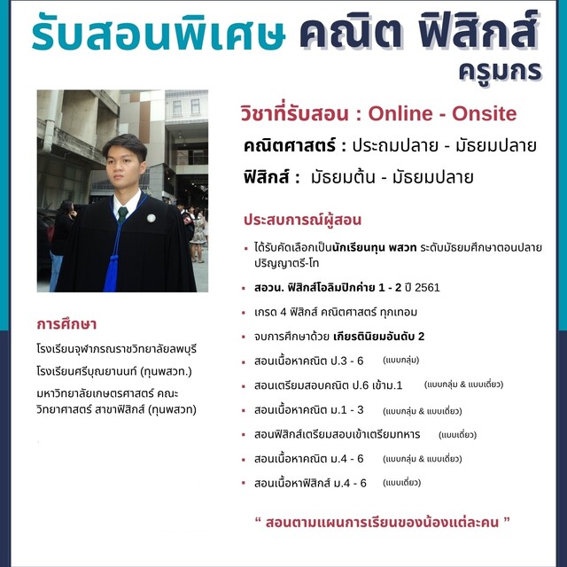 ครูมกร สอนพิเศษคณิต,ฟิสิกส์ สอนคณิตศาสตร์ ฟิสิกส์