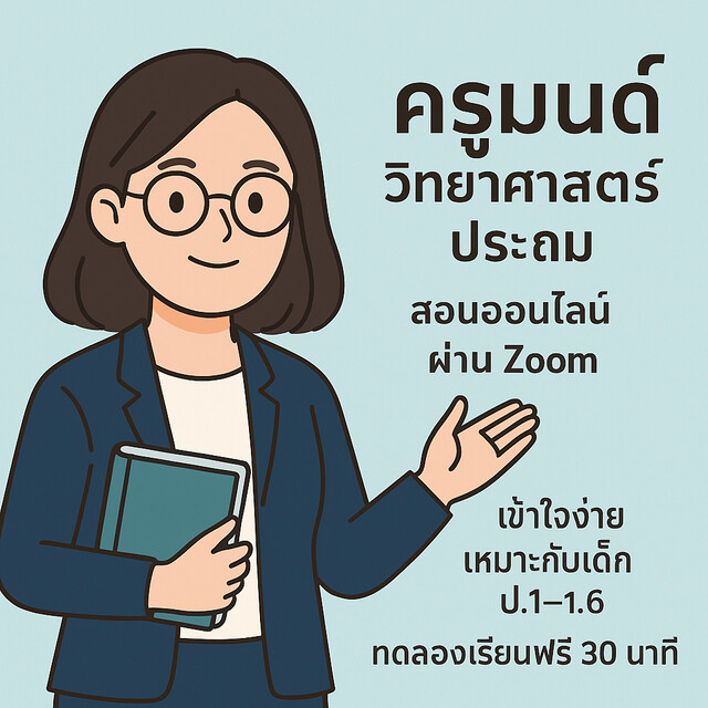 สวัสดีค่ะ ครูมนต์ให้บริการสอนวิชาวิทยาศาสตร์ระดับประถม (ป.1–ป.6) แบบ เรียนออนไลน์ ผ่าน Zoom หรือ Google Meet