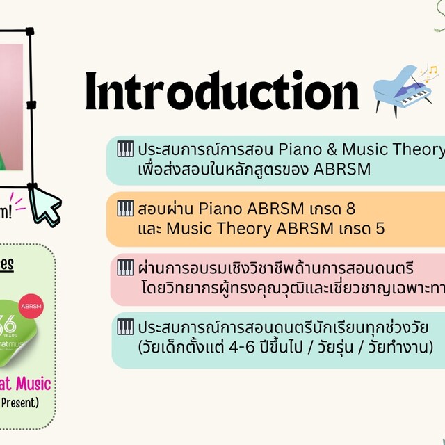 🧡 ประสบการณ์การสอน Piano & Music Theory กว่า 18 ปี เพื่อส่งสอบในหลักสูตรของ ABRSM
