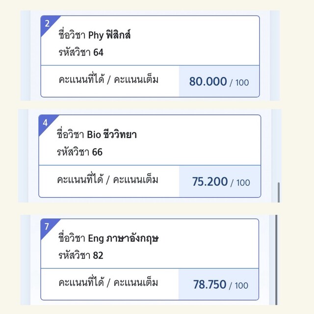 A-Level: ชีวะ 75.2 | อังกฤษ 78.75 | ฟิสิกส์ 80