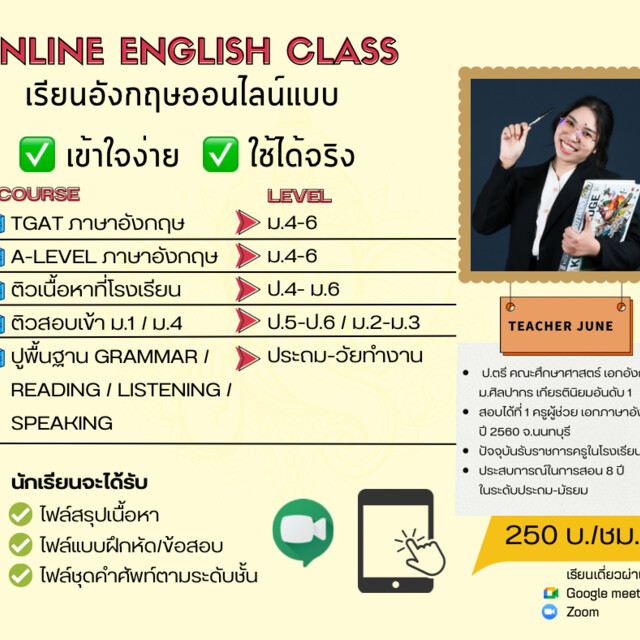 รับสอนพิเศษภาษาอังกฤษออนไลน์ 250บาท/ชม.