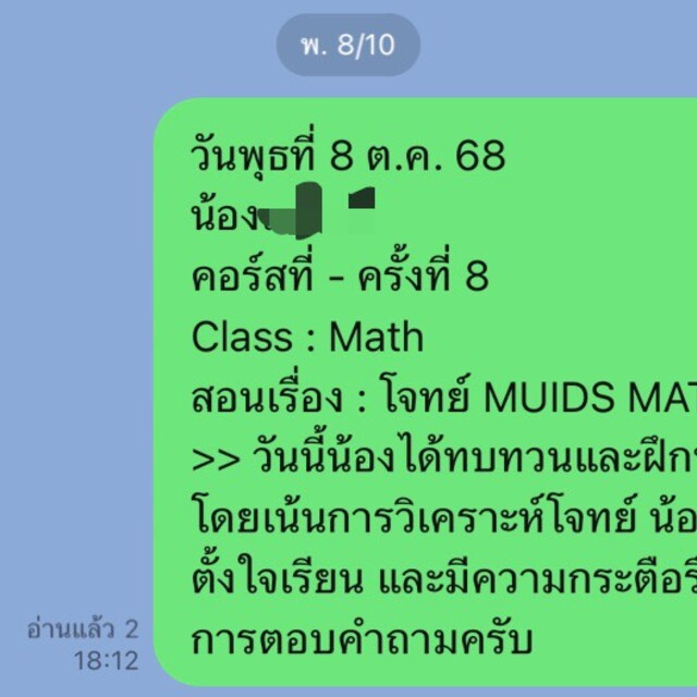 รวมถึงติวน้อง ๆ ที่เตรียมสอบเข้า MUIDS (Mahidol University International Demonstration School) โดยใช้แนวข้อสอบจริงและสรุปเนื้อหาสำคัญให้น้องเข้าใจอย่างมั่นใจ