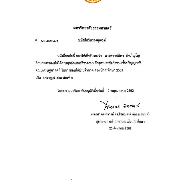 🎓 จบการศึกษาปริญญาตรีจาก คณะเศรษฐศาสตร์ มหาวิทยาลัยธรรมศาสตร์