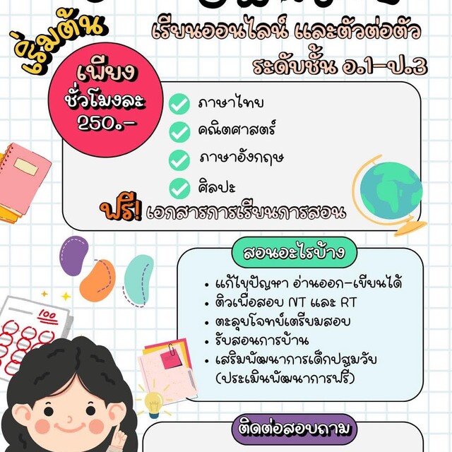 #สอนพิเศษออนไลน์ #สอนพิเศษคณิตศาสตร์ #สอนพิเศษภาษาอังกฤษ #สอนพิเศษภาษาไทย #สอนพิเศษศิลปะ #สอนพิเศษอนุบาล #สอนพิเศษประถม #สอนพิเศษชลบุรี #สอนพิเศษศรีราชา #เสริมพัฒนาการเด็ก
