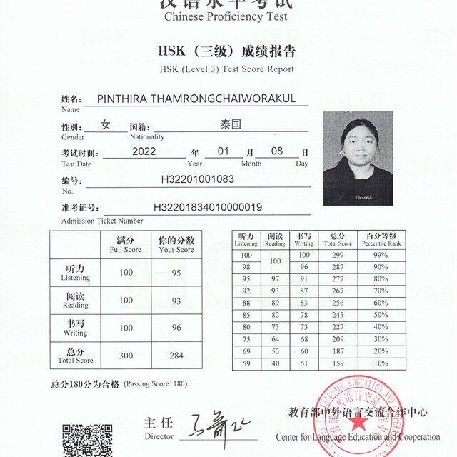 การันตีคุณภาพ สอบ HSK3 ครั้งเดียว ผ่านด้วย คะแนน284/300