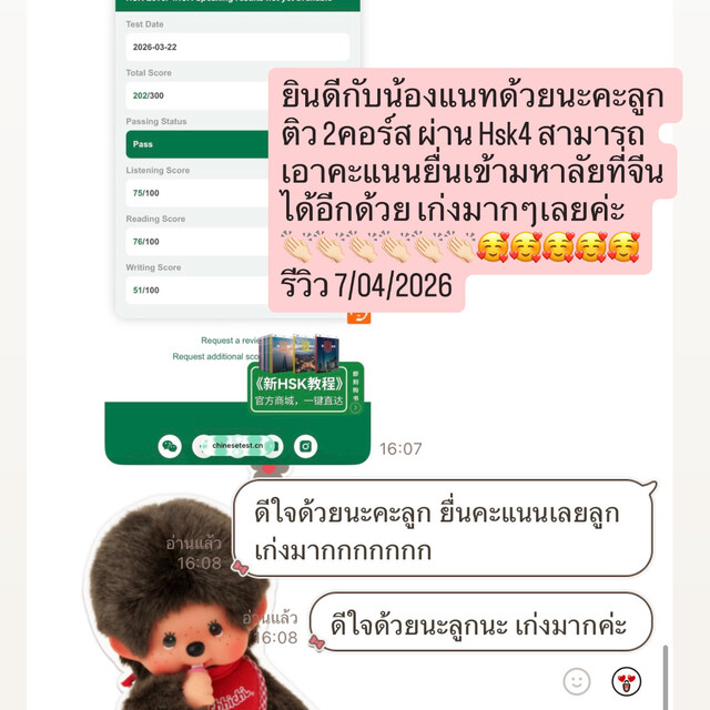 💡 การันตีจากรีวิวน้องๆที่สอบเข้ามหาวิทยาลัยได้ หรือน้องๆพี่ๆเพื่อนๆผู้เรียน ที่สอบผ่าน HSK ตามที่น้องๆหรือผู้เรียนต้องการ เลื่อนดูรีวิวผู้เรียนจากรูปภาพได้เลยน้าา~💓