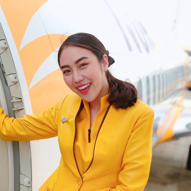 ตอนนี้ทำงาน เป็นพนักงานต้อนรับบนเครื่องบินค่ะ
