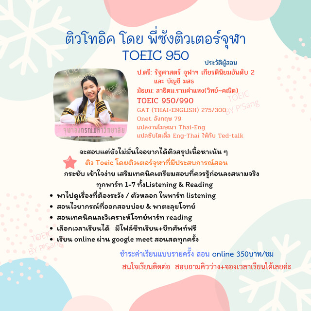 TOEIC โทอิค โดยติวเตอร์จุฬา350 บาท ต่อชั่วโมง