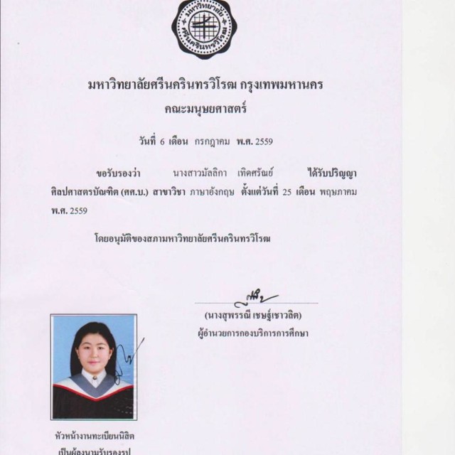 จบจากคณะมนุษยศาสตร์ เอกภาษาอังกฤษ มหาวิทยาลัยศรีนครินทรวิโรฒ