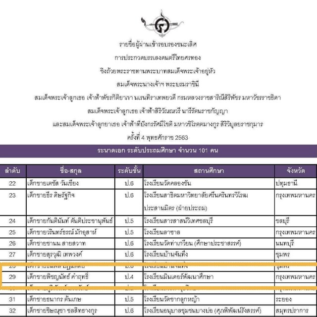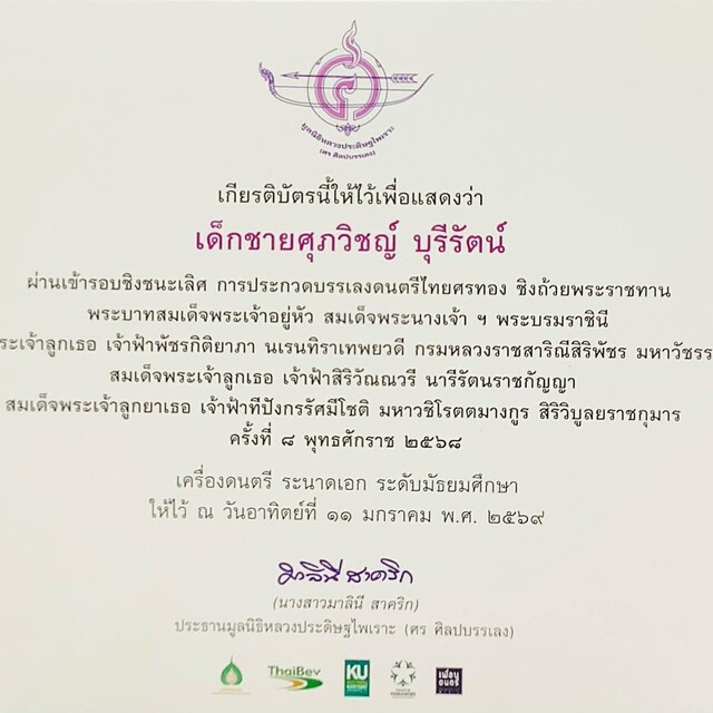 จบการศึกษาดนตรีไทย ระดับชั้น ม.6 จากวิทยาลัยนาฏศิลป