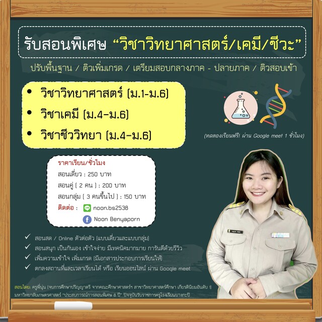 📍รับสอนวิชาวิทยาศาสตร์ทุกระดับชั้น ป.1-ม.6