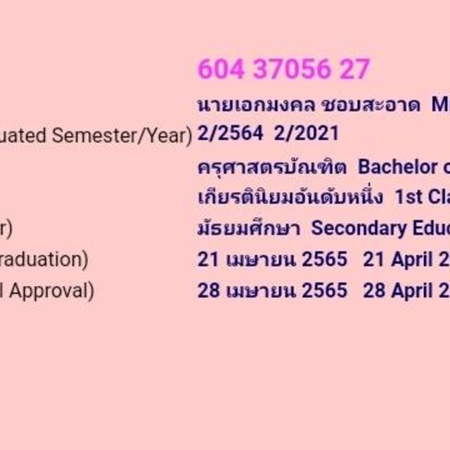 ปัจจุบันสำเร็จการศึกษาจากคณะครุศาสตร์ จุฬาลงกรณ์มหาวิทยาลัย