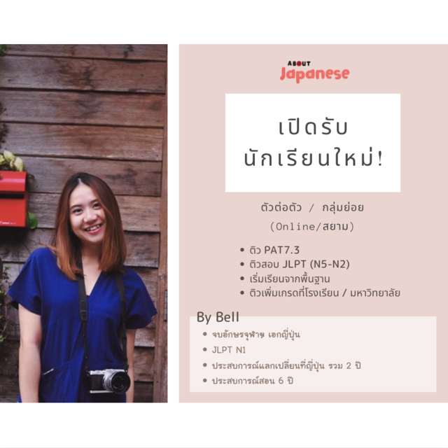 เบลรับสอนภาษาญี่ปุ่นเบื้อต้น ทั้งสนทนา การอ่านเขียน และติวสอบวัดระดับภาษาญี่ปุ่นนะคะ
