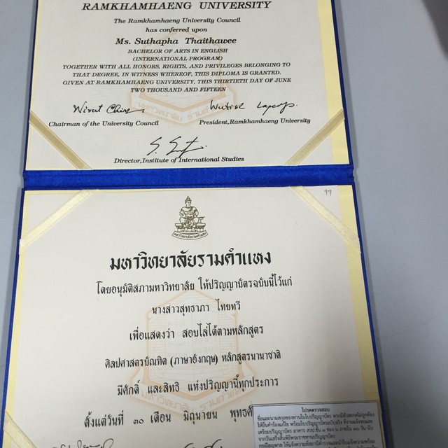 I just graduated with a Bachelor's major in B.A.English and minor in International Business at The Institute of International Studies Ramkhamhaeng University. I'm graduated High School Certificate from Beverlyhills Girls High School In Sydney Australia in the year2009 and graduated with Certificate3 in Chidren's Services in 2012 from Tandwick TAFE Institute Sydney Australia. I had been living in Australia for almost seven years and gained many new experiences while living in Australia. I'm now working full-time as home tutoring in English.
