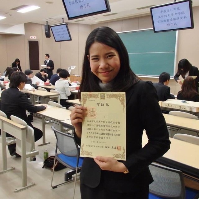 ป.โท สาขาการสอนญี่ปุ่น มหาวิทยาลัยริสึเมคัง จังหวัดเกียวโต ประเทศญี่ปุ่น (ทุนรัฐบาลญี่ปุ่น)