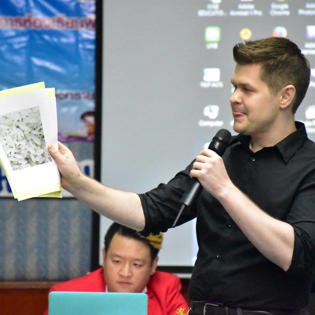 ผมสำเร็จการศึกษาด้านศิลปศาสตร์มหาบัณฑิตสาขาวารสารศาสตร์ และปริญญาตรีเกียรตินิยมด้านวรรณคดีอังกฤษจากประเทศแคนาดา ผมมีประสบการณ์กว่า 10 ปีในการทำงานที่สำนักงานข่าวแห่งชาติของประเทศแคนนาดาและผมมีความเชี่ยวชาญในการตรวจแก้งานข่าวที่ต้องสื่อสารผ่านสถานีวิทยุที่ออกอากาศทั่วประเทศ และผมได้กลับมาการเพิ่มเติมความรู้จากมหาวิทยาลัยมากยิ่งขึ้นทำให้ผมได้เรียนรู้จิตวิทยาที่มุ่งเน้นสำหรับการเรียนรู้ภาษาที่สอง ด้วยเหตุผลดังที่กล่าวมาและงานวิจัยด้านภาษาศาสตร์ของผมได้นำผมมายังประเทศไทย เพื่อศึกษาวิธีการสอนภาษาไทยที่มีลักษณะเฉพาะตัวที่แตกต่างจากทุกๆที่ในโลกทำให้ผมมายังที่นี้ ณ ตอนนี้ และเหนือสิ่งอื่นใดผมก็ชอบเมืองไทยและรักคนไทยมากๆ ด้วยครับ :)