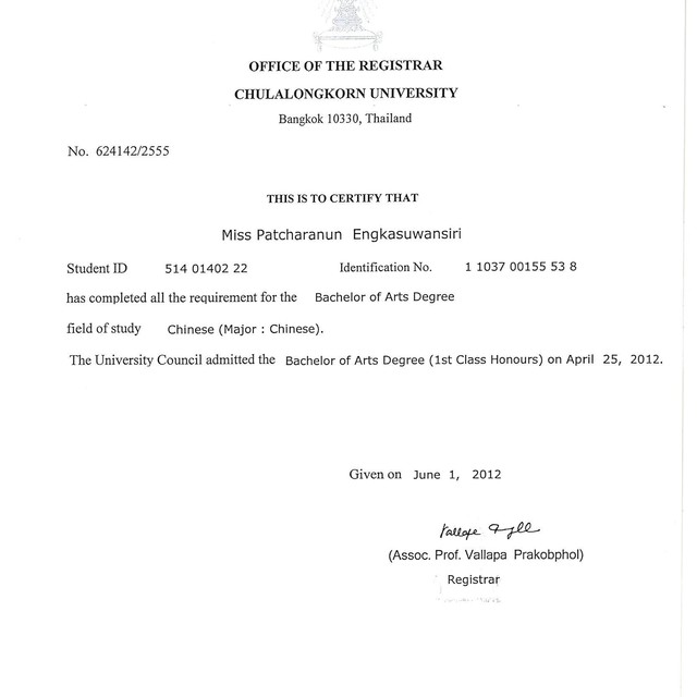 ดิฉันจบการศึกษาจาก อักษรศาสตร์ จุฬาฯ เอกภาษาจีน (เกียรตินิยมอันดับ 1)