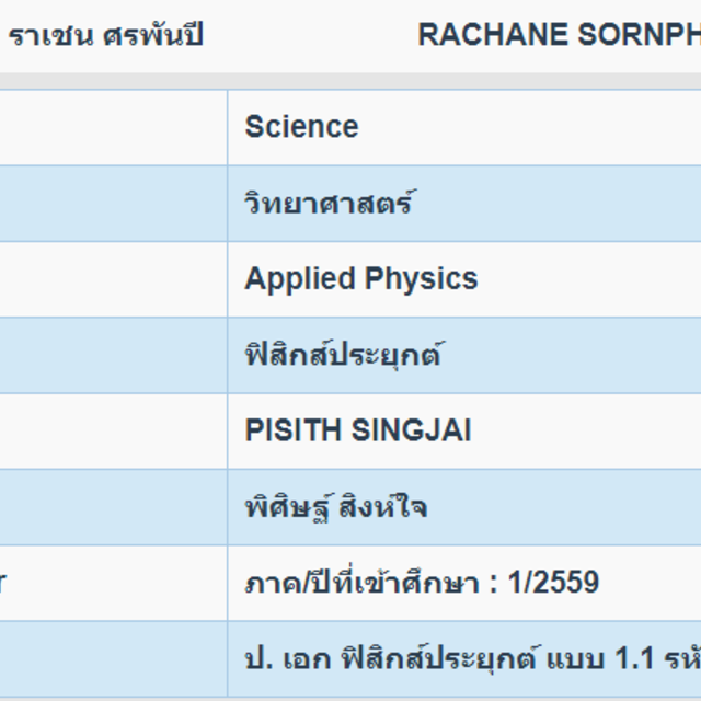 กำลังศึกษา ปริญญาเอก ฟิสิกส์ประยุกต์ คณะวิทยาศาสตร์ มหาวิทยาลัยเชียงใหม่