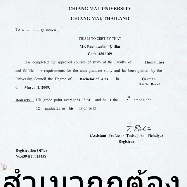 - เกียรตินิยมอันดับ 1 คณะมนุษยศาสตร์เอกภาษาเยอรมัน 2010