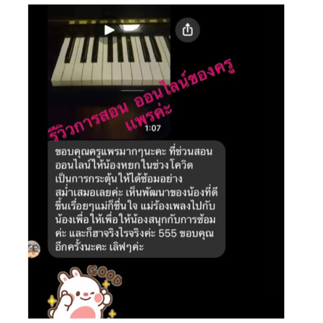 ครูแพรสอนเปียโนเชียงใหม่ตอบกลับ:ขอบพระคุณมากค่าคุณเเม่