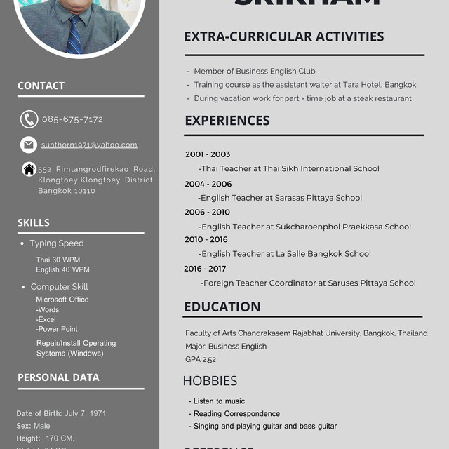 นายสุนทร ศรีคำ สอนภาษาอังกฤษ Excel