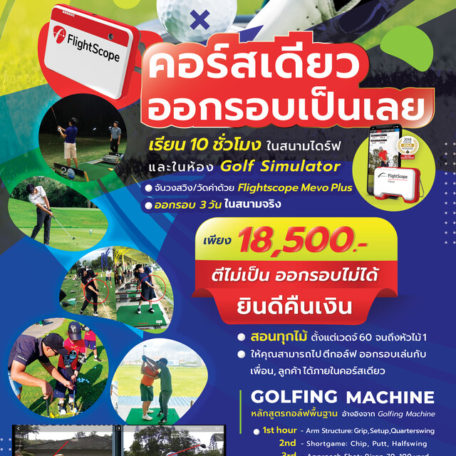 ให้คุณสามารถไปตีกอล์ฟออกรอบเล่นกับเพื่อนกับลูกค้าได้ภายในคอร์สเดียว ตีไม่เป็น ออกรอบไม่ได้ยินดีคืนเงิน