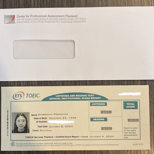 คะแนนโทอิค 950 เต็ม 990 (สอบเมื่อ ตุลาคม 2024)