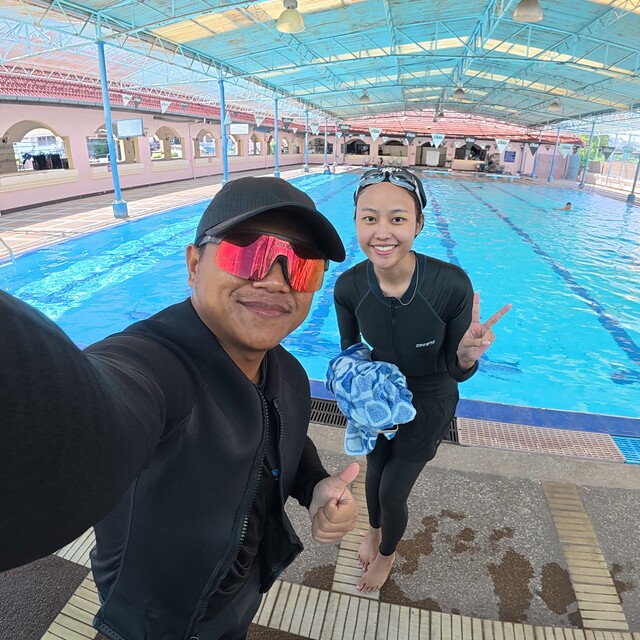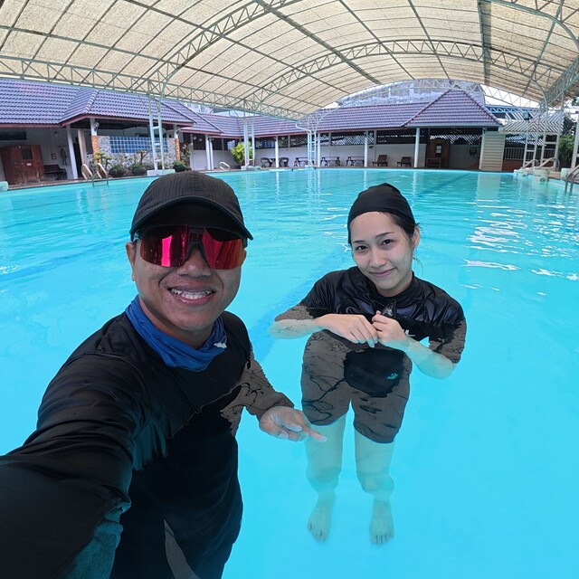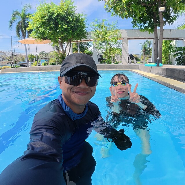 เราเรียนกับครูเวฟเองเลย ตอนแรกพาน้องมาเรียนด้วย แต่เป็นหลักสูตรแบบวันเดียวเป็น ตัวเราว่ายได้เลยในวันนั้น แต่น้องพอลองแล้วกลัวน้ำ ครูก็ไม่กดดัน บอกให้น้องค่อยๆปรับตัวกับการลงน้ำก่อน ไม่ต้องหักดิบ ซึ่งเราว่าดีมากที่เข้าใจในตัวเด็ก การสอนแบบตัดไปที่เนื้อหาหลักเลย เช่น การหายใจ ลอยตัว หรือการใช้ร่างกาย แนะนำเลยค่ะ