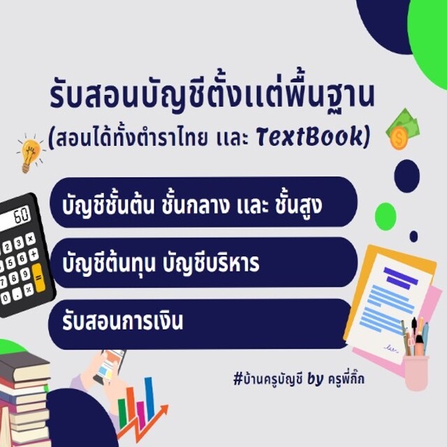 📍รับสอนบัญชีตั้งแต่พื้นฐาน (สอนได้ทั้งตำราไทยและ TextBook)(หลักสูตรไทยและอินเตอร์)