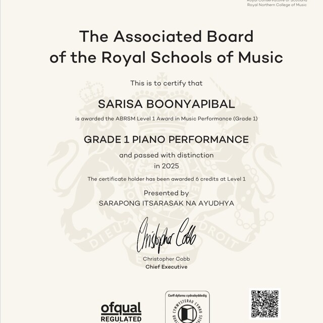 สำหรับนร.เปียโนที่อยากสอบเกรดABRSM หรือ Trinity สามารถแจ้งกับครูได้ ครูจะจัดเตรียมตารางฝึกซ้อม, ให้คำปรึกษา และฝึกซ้อมเพื่อเตรียมสอบโดยเฉพาะ