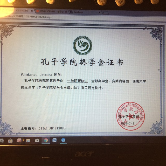 - เคยได้ทุนไปเรียนที่จีน ไปเรียนต่อภาษาที่มหาลัยซีหนาน 西南大学ประเทศจีน