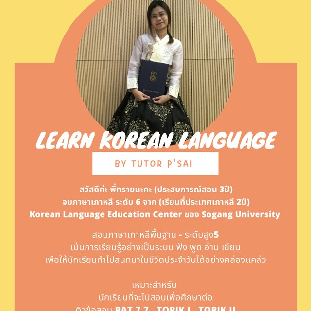 ภาษาเกาหลี พื้นฐาน(กึบ1) - ระดับสูง(กึบ5)200 บาท ต่อชั่วโมง
