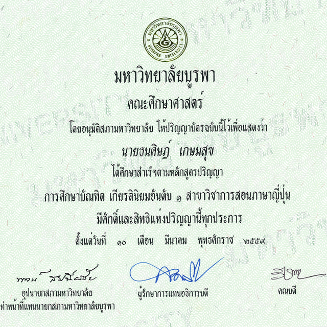 ปริญญาตรี: การศึกษาบัณฑิต เกียรตินิยมอันดับ 1 สาขาการสอนภาษาญี่ปุ่น ม.บูรพา