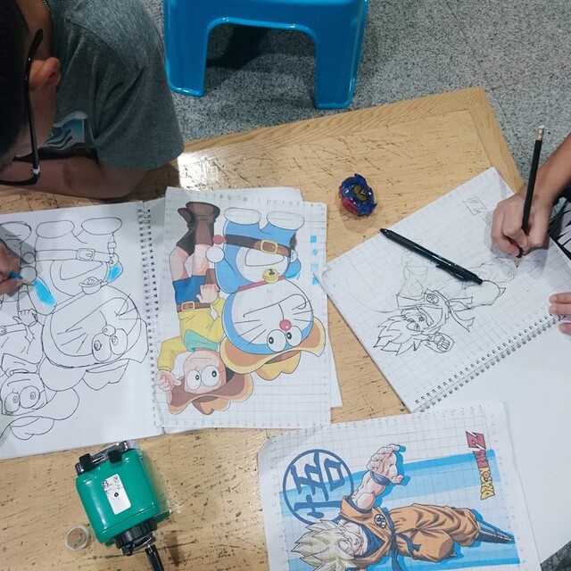 ส่วนเด็กโต จะสอนทฤษฎีสี พื้นฐานวาดเส้น การขึ้นโครงร่างอย่างง่าย perspective composition เป็นต้น