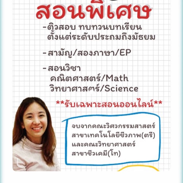 รับสอนออนไลน์ เดี่ยว/กลุ่ม ประถม และ ม.ต้น ค่ะ