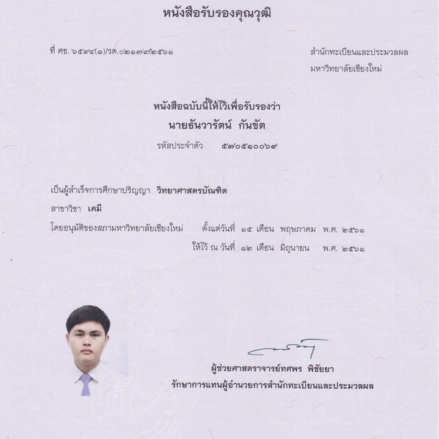 ชื่อ ธันวารัตน์ กันขัต ครับ ชื่อเล่น ส้มโอ เรียนจบ มหาวิทยาลัยเชียงใหม่ คณะวิทยาศาสตร์ สาขา เคมี