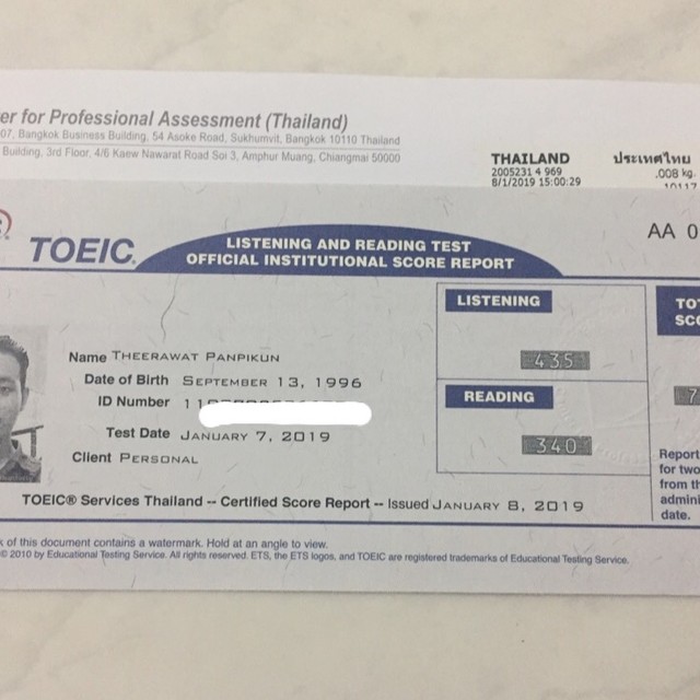 - การสอบวัดระดับภาษาอังกฤษ TOEIC 775 คะแนน