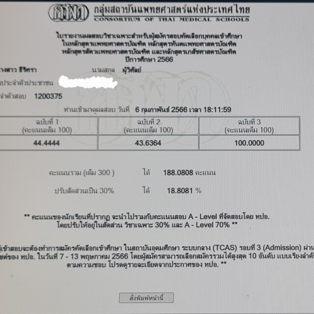 - ได้คะแนน กสพท (TPAT1) 188.08 พาร์ทเชื่อมโยง 100 คะแนน