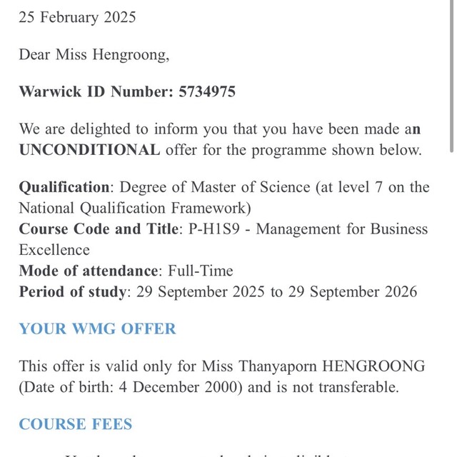 - University of Warwick (Top 5 ในอังกฤษ) ในสาขา Business & Engineering