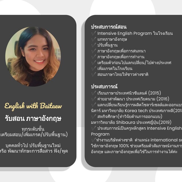 รับสอน ภาษาอังกฤษทุกระดับชั้น(เตรียมสอบ/เพิ่มเกรด/ปรับพื้นฐาน)