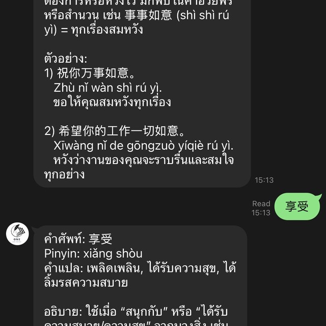 Private Chinese Course with OneChineseตอบกลับ:ยินดีที่ได้เป็นส่วนหนึ่งในการเติมเต็มภาษาและเตรียมตัวไปจีนในครั้งแรกนี้ ขอให้มีความสุขกับการไปจีนในครั้งนี้และเก็บเกี่ยวประสบการณ์ได้อย่างที่เตรียมตัวและตั้งใจกันไว้ครับ