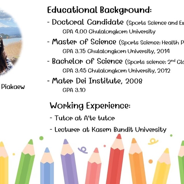 รับสอนภาษาอังกฤษทุกระดับชั้นจนถึงมัธยมศึกษาตอนต้น โดยครูพี่ปลามีประสบการณ์การสอนภาษาอังกฤษในโรงเรียนบ้านอ.เตติวเตอร์ และประสบการณ์สอนในระดับมหาวิทยาลัยมากกว่า4ปี มีความเข้าใจและความต้องการของนักเรียน สามารถปรับรูปแบบการสอนให้ยืดหยุ่นต่อบริบทของนักเรียนแต่ละคนได้ ใช้เทคนิคการสอนผ่านกิจกรรม