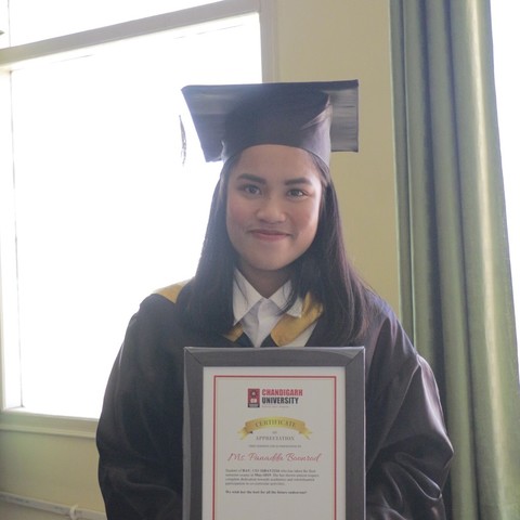 สวัสดีคะ ชื่อ ปนัดดา บุญรอดนะคะ อายุ 24 ปี จบการศึกษาที่ Chandigarh University ที่ประเทศ อินเดียคะ ทางด้าน กราฟฟิก