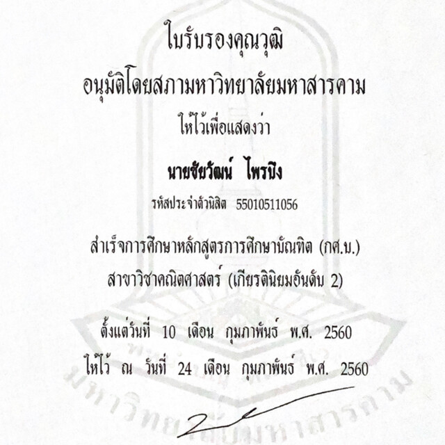 #บัณฑิตเกียรตินิยมอันดับ2 (3.72) คณะศึกษาศาสตร์ มหาวิทยาลัยมหาสารคาม