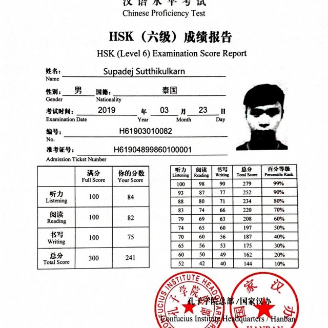 สวัสดีครับนักเรียนทุกๆคนและผู้อ่านทุกคนด้วยน่ะครับ ผมเพิ่งสำเร็จการศึกษาวุฒิปริญญาตรีมากจากเมืองกว่างโจว ประเทศจีน คณะครุศาสตร์ เอกภาษจีน เป็นด้านการเรียนการสอนโดยตรง ผมมีความมุ่งมั่นที่จะมอบความรู้ทางด้านภาษาจีนให้กับผู้เรียนอย่างเต็มที่ ทุกเวลา ระหว่างการศึกษาที่ประเทศจีน ผมได้ผ่านการสอบวัดระดับภาษาจีน HSK ( Level 6 241/300 คะแนน ) และ HSKK ( Advanced Level หรือระดับสูง 66/100 คะแนน ) และเคยทำการฝึกสอนภาษาจีนที่โรงเรียนกุหลาบวิทยาเป็นเวลา 1 เดือน สามารถสอนผู้เรียนได้ทุกระดับการศึกษาและเน้นามความต้องการทางภาษาของนักเรียนเช่น การฟัง การพูด การอ่านและการเขียน ตั้งแต่ขั้นพื้นฐาน ( ไม่มีพื้นฐานเลย ) ไปจนถึง HSK ( 1-6 ) หรือ PAT 7.4 และอื่นๆ ตามความต้องการ เช่น เน้นเจรจาอย่างเดียว เน้นพูดสำเนียง