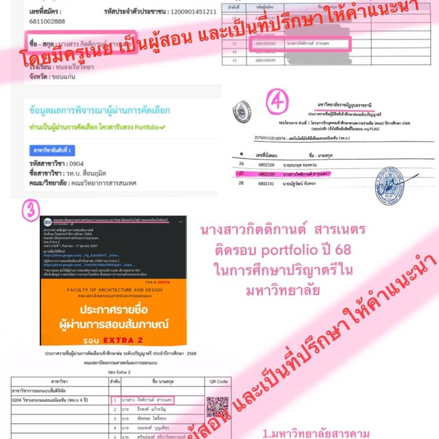 ขอบคุณครูเนย ที่เป็นที่ปรึกษาในการเรียนให้น้องข้าวฟาง จนน้องสามารถ สอบติด ได้ถึง 5 มหาวิทยาลัย เป็นเด็ก 68 สมความตั้งใจค่ะ