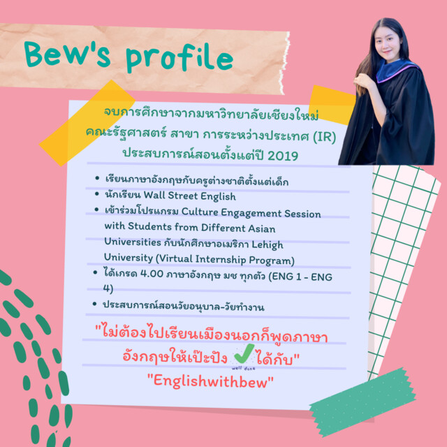 💖English with Bew เข้าใจและใส่ใจการเรียนภาษาอังกฤษของผู้เรียนทุกคน ให้เราเป็นเหมือนเพื่อนเรียนและเป็นเซฟโซนในการเรียนภาษาของทุกคนนะคะ