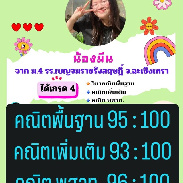 และเป็นคุณครูที่ทำให้ไม่กลัวกับวิชาคณิตอีกต่อไป เรากล้าเผชิญโจทย์มากขึ้น ทำให้วิชาคณิตศาสตร์เป็นวิชาที่น่าค้นหา เรารู้สึกอยากลอง(จากที่เป็นเด็กกลัวกับวิชาคณิตศาสตร์มาก)